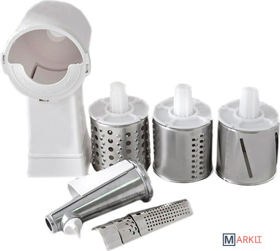 Комплектация - Овощерезка комплектуется тремя типами насадок: для крупного и мелкого шинкования и для нарезки ломтиками;- Соковыжималка предназначена для приготовления соков, пюреобразных масс.