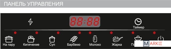 | Режимы приготовления | 7 (суп, молоко, кипячение, на пару, жарка, подогрев, барбекю) |