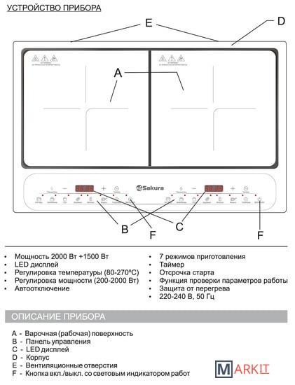 | Общая мощность | 3 500 Вт (2000 + 1500 Вт) |