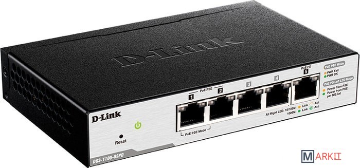 Markit » Коммутаторы » Настраиваемый коммутатор D-Link DGS-1100-05PD/U