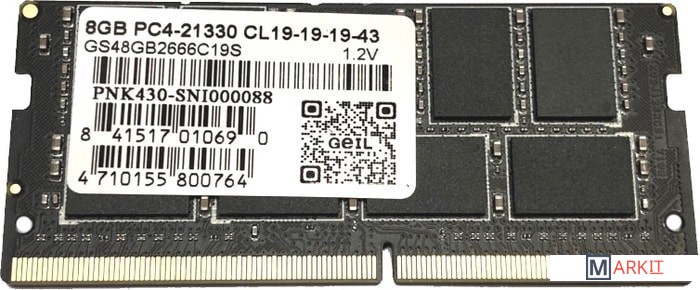 Markit » Оперативная память » Оперативная память GeIL 8GB DDR4 SODIMM PC4-21300 GS48GB2666C19S