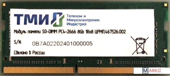 Markit » Оперативная память » Оперативная память ТМИ 8GB DDR4 SODIMM PC4-21300 ЦРМП.467526.002