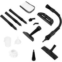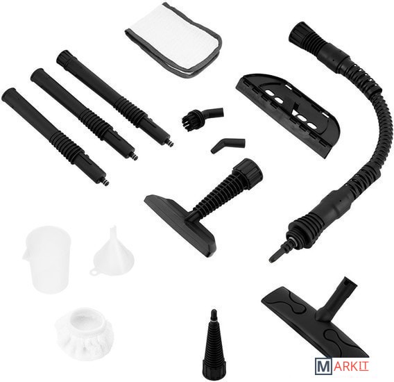 Дополнительные насадки и приспособления - воронка;- мерный стакан;- насадка для отпаривания;- паровой шланг;- круглая нейлоновая щетка.