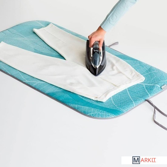 Всегда готова к использованию – просто разверните.Отличная альтернатива гладильной доске – занимает мало места.Большой размер – подходит для глажения всех видов одежды (65х120 см).Подходит для глажения и отпаривания – 6-слойный упругий материал.Может использоваться с паровыми утюгами (для паровых систем лучше использовать гладильную доску).Быстрое глажение – верхний слой из хлопка, основа из теплоотражающего материала.Превосходное качество отпаривания – упругие прокладки из поролона и фетра.Безопасное глажение – непроницаемый слой защищает рабочую поверхность от воздействия тепла и влаги.Устойчивость – благодаря нескользящей основе изделие прочно удерживается на месте во время глажения.Удобна и компактна при хранении – имеется петелька для подвешивания и фиксирующий шнур.