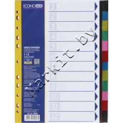 Разделители для регистраторов пластиковые Economix, 12 л., индексы по цветам (без нумерации) Код: 32584