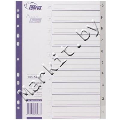 Разделители для регистраторов пластиковые Forpus, 10 л., индексы по цифрам (10-1) Код: 32588