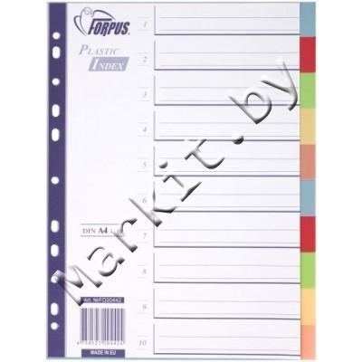 Markit » Канцтовары » Папки, файлы, портфели, настольные системы хранения » Разделители для регистраторов » Разделители для регистраторов пластиковые Forpus, 10 л., индексы по цветам (без нумерации)
