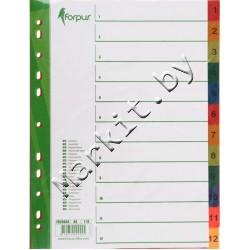Разделители для регистраторов пластиковые Forpus, 12 л., индексы по цифрам (1-12) Код: 32591