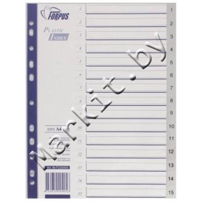 Разделители для регистраторов пластиковые Forpus, 15 л., индексы по цифрам (1-15) Код: 32593