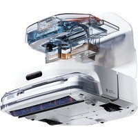 Комплектация робот-пылесос, док-станция, адаптер питания, мягкая роликовая щетка, крышка резервуара для воды для сухой уборки, щетка для удаления волос, сменный фильтр-губка, сменный сетчатый фильтр, очищающая кисть, документация