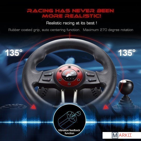 4 в 1 - совместим со всеми популярными консолями и PC. Совместимость с Xbox One (исключая контроллеры Xbox One), совместим с PlayStation 4 (за исключением исходных контроллеров PS4), совместим с PlayStation 3, совместим с ПК поддерживает Win7/8/10. Точный 8-позиционный D-pad. 2 оси, 12 кнопок, функция обратной связи вибрации, 270 градусов вращения, регулируемая чувствительность, прорезиненная рукоятка, с ножными педалями. В комплекте 2 шт. монтажных зажимов.