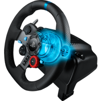 Руль достоверно воспроизводит ощущения от процесса вождения. Механизм обратной связи по усилию со сдвоенным электродвигателем точно передает эффект бокового увода колес и особенности поверхности, по которой осуществляется движение. Вал рулевого управления установлен на стальных шарикоподшипниках. Его вес соответствует параметрам рулей настоящих машин. Педали и рычаги из нержавеющей стали позволяют точно воспроизвести усилия, необходимые для управления автомобилем. Рулевое колесо с кожаным покрытием ручной выделки позволяет игроку ощутить удобство вождения самых роскошных машин. Плавность и бесшумность работы обеспечиваются за счет применения косозубой передачи.