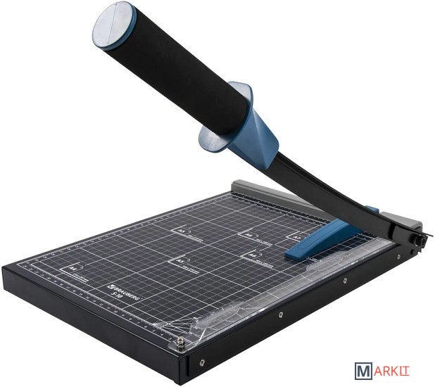 Сабельный резак для бумаги BRAUBERG «KATANA» подходит для домашнего и офисного применения. Позволяет одновременно разрезать до 10 бумажных листов формата А4.Оснащен безопасным лезвием, регулируемым упором и ручным прижимом для бумаг. Рукоятка имеет мягкое покрытие, которое также препятствует соскальзыванию руки. Прочное металлическое основание. Удобная разметка рабочей поверхности и регулируемый упор позволяют точно наметить линию реза. Длина реза составляет 320 мм. Также имеются уголки для форматов А4, А5, А6, А7. Резиновые ножки предотвращают скольжение по рабочей поверхности во время эксплуатации.