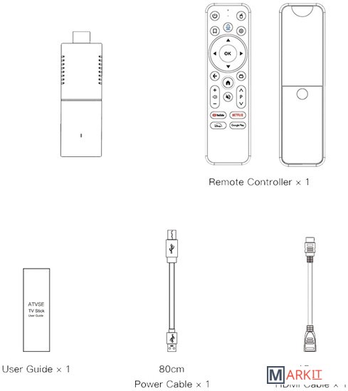 Комплект поставки Micro-USB кабель, Руководство по эксплуатации, HDMI кабель, BT пульт дистанционного управления