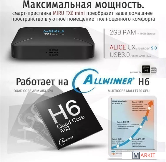 Markit » Медиаплееры и ТВ-приставки » Смарт-приставка Miru TX6 Mini 2ГБ/16ГБ