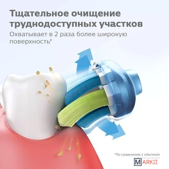 Индивидуальный уход за вашей улыбкой: насадка C3 Premium Plaque Defence подстраивается под форму зубов и десен благодаря мягким, гибким ребрам, которые охватывают в 4 раза более широкую поверхность, чем обычная чистящая насадка, и обеспечивает комфортную тщательную чистку