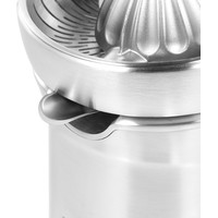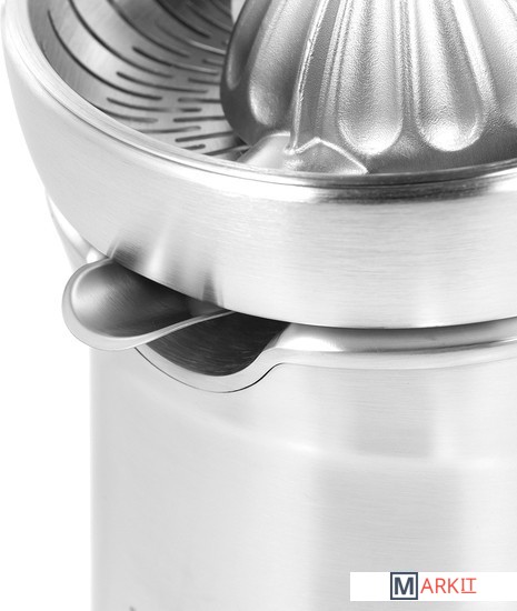 Эффективная система отжимаКомбинация свойств механического пресса и электрического привода позволяет выжимать сок без особых усилий.Литой металлический конусКонструкция конуса предназначена для получения сока из всех видов цитрусовых, а также плодов граната. Его размер и форма способствуют эффективному извлечению сока.Надёжность и стильДизайн, отмеченный международной премией RedDot Design Award, гармонично дополнит современный интерьер кухни.