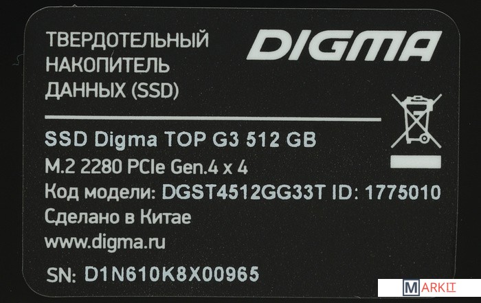 Markit » SSD » SSD Digma Top G3 512GB DGST4512GG33T