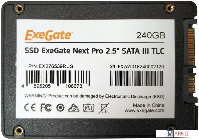 | Тип микросхем Flash | 3D TLC NAND |