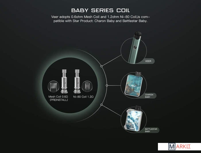 Комплектация - сеточный испаритель 0.6 Ом- спиральный испаритель 1.2 Ом- кабель для зарядки- документация