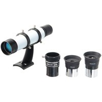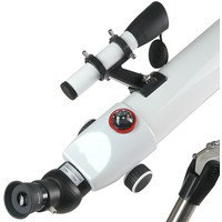 Просветленный ахроматический объектив с диаметром 70 мм, собирает в два раза больше света, чем 50 мм и позволяет наблюдать не только небесные, но и очень удаленные земные объекты. Картинка резкая, без окрашенности изображения по краю поля зрения. В этот телескоп вы сможете увидеть детали на дисках планет, кратеры Луны размером 5–6 км, многие туманности и звездные скопления (вплоть до 12 m звездной величины).Телескоп снабжен экваториальной монтировкой EQ8 без единой пластиковой детали с возможностью микрометрического наведения телескопа по обеим осям.PolarStar 700/70 EQ8 поставляется с алюминиевым штативом с возможностью регулировки высоты. Распорки для ножек служат не только для повышения устойчивости, но и в качестве подставки под полочку для аксессуаров (идет в комплекте). Сумка для переноски, в которую укладывается весь комплект, позволяет безопасно (для оптики и внешнего вида) транспортировать прибор для выездов на природу или при походах в гости.