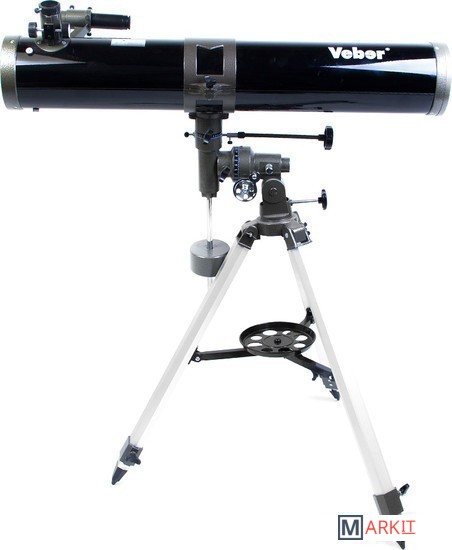 Модель для серьезных, но начинающих любителей астрономии. Зеркало диаметром 114мм достаточно велико, чтобы собирать много света (в этот телескоп вы сможете увидеть объекты солнечной системы во всех подробностях - таких как щель Кассини в кольце Сатурна, лунные кратеры размером ок.5 км, слабые звезды до 13 m зв. величины). Габариты прибора довольно внушительные, длина трубы 86 см.