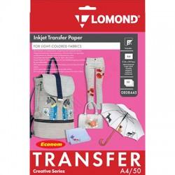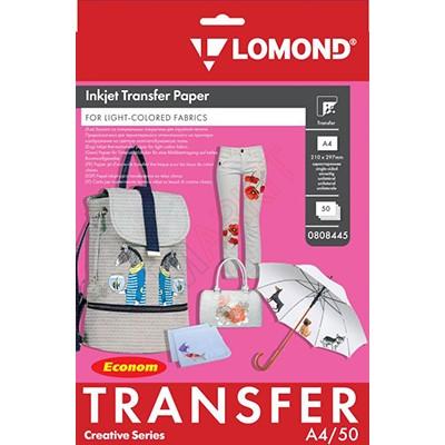 Термотрансферная бумага LOMOND серия TRANSFER PAPER ECONOM, A4, 140 г/м2, ДЛЯ СВЕТЛЫХ ТКАНЕЙ (BRIGHT CLOTH), 50 листов, односторонняя, для струйной печати (0808445) Код: 820