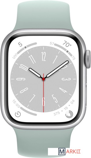 Markit » Умные часы и браслеты » Умные часы Apple Watch Series 8 41 мм (алюминиевый корпус, серебристый/суккулент, силиконовый ремешок)