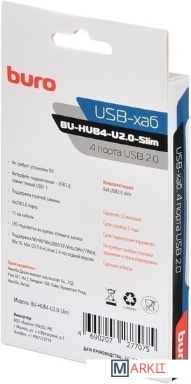 Markit » USB-хабы и док-станции » USB-хаб Buro BU-HUB4-U2.0-Slim