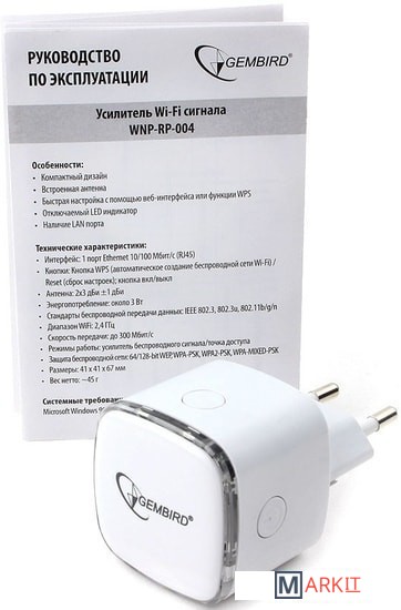 Markit » Беспроводные точки доступа и усилители Wi-Fi » Усилитель Wi-Fi Gembird WNP-RP-004-W