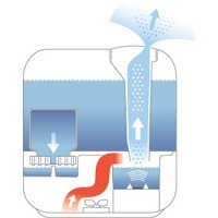Вместительный бак для воды из прозрачного голубого пластика занимает значительную часть корпуса и подсвечивается мягким светом. В темное время суток прибор выполняет роль красивого ночника: создает атмосферу вашего дома в прямом и переносном смысле слова. Днем — стильный предмет интерьера, ночью — оригинальный светильник, и 24 часа в сутки — источник живительной влаги для комфортного пребывания в помещении. Эффективное увлажнение и красивый внешний вид — не удивительно, что U700 является флагманом в линейке ультразвуковых увлажнителей.