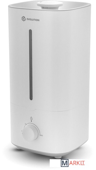 Увлажнитель воздуха EVOLUTION позволяет поддерживать необходимую влажность в помещении площадью до 25 м2. Особенности:- Верхний залив воды. Отверстие подачи пара вращается на 360 градусов, за счет чего можно направлять поток пара в нужном направлении и избежать нежелательного попадания на мебель и мониторы.- Защита от отсутствия воды – сработает автоотключение, когда вода закончилась.- Есть шкала с уровнем воды – всегда виден остаток.