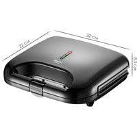 Размер нагревательных пластин: 21.5x12.5 см;Размер вафельницы: 22x22x8.5 см.