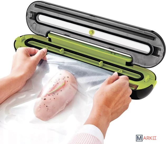 Вакууматор Kitfort КТ-1522 обеспечит долгие сроки хранения ваших любимых продуктов. Продукты, упакованные под вакуумом, сохраняют аппетитный вид, вкус и полезные свойства, а портятся существенно дольше по сравнению с обычными условиями хранения.Открытый край пакета укладывается под крышку прибора, после чего вакууматор начинает выкачивать из него воздух. В результате образования вакуума пакет плотно обжимает содержимое. Как только воздух удалён, начинается запечатка открытой стороны пакета.КТ-1522 поможет запаковать продукты в автоматическом режиме. Вакууматор откачает воздух из пакета, а затем запечатает его. Кнопка «Запечатывание» — запечатывает пакет без откачки воздуха.На КТ-1522 установлен специальный клапан напуска воздуха. Он нужен, чтобы в вакуумную камеру попал воздух, и можно было открыть крышку после вакуумирования продуктов.Для обеспечения надёжности при выкачивании воздуха, вакууматор плотно закрывается. Чтобы открыть устройство нажмите одновременно боковые кнопки прибора, которые закрепляют положение крышки при выкачивании воздуха.Магниты на дне корпуса позволяют хранить устройство на холодильнике, так оно не займёт много места на кухне. Обратите внимание, что вакууматор может не держаться на некоторых поверхностях, если слой краски на них толстый или поверхность неровная.В вакуумный пакет можно поместить документы, деньги, спички, лекарства, карту, компас и другие предметы. Это защитит их от сырости и попадания воды. Серебряные украшения, коллекционные монеты, упакованные таким способом, не будут тускнеть со временем.Для вакуумирования используют специальные пакеты или плёнку в рулонах. Их ширина не должна превышать длины вакуумной камеры — не более 28 см. В комплектации с КТ-1522 идет комплект пакетов для вакуумирования, размерами 15 х 20 см.Создаваемое разрежение (максимум): 0.6 бар.Ширина шва пайки: 1.5 мм.Длина шнура: 1.4 м.