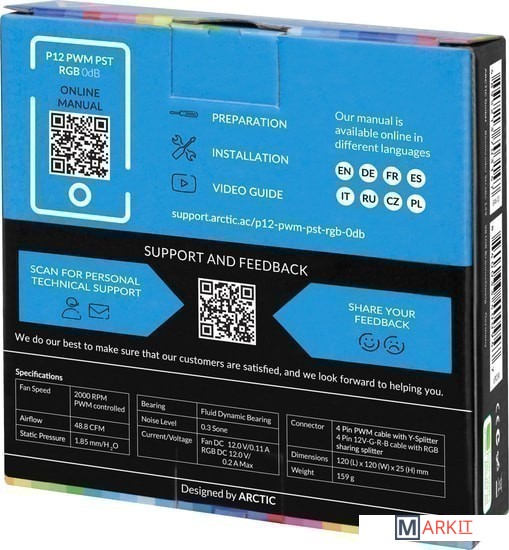 Markit » Системы охлаждения » Вентилятор для корпуса Arctic P12 PWM PST RGB 0dB ACFAN00186A