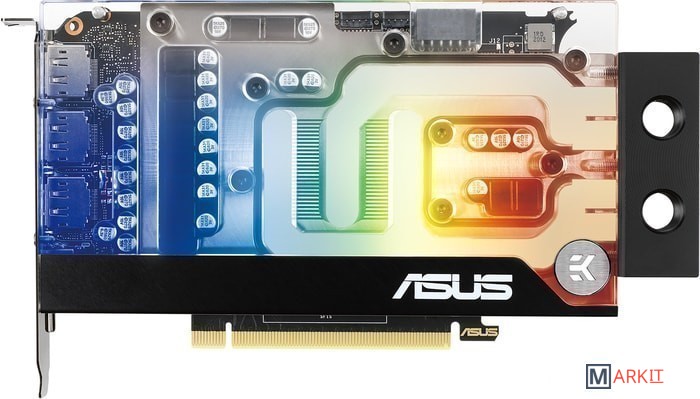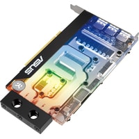 ASUS и EK представляют видеокарту ASUS EKWB GeForce RTX 3070 – результат совместной работы инженеров обеих компаний. Металлическая усилительная пластина и стальная монтажная планка вкупе с автоматизированным производственным процессом (технология Auto-Extreme) создают надежную основу для полноразмерного ватерблока EK. Все устройство умещается в форм-фактор всего лишь одного слота, предлагая преимущества водяного охлаждения владельцам миниатюрных компьютеров.