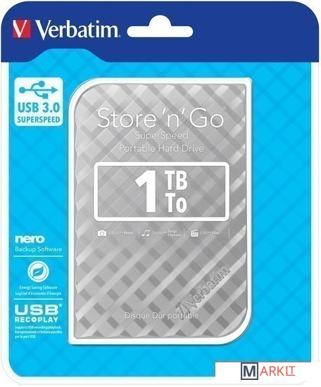 Markit » Внешние накопители (HDD и SSD) » Внешний накопитель Verbatim Store 'n' Go USB 3.0 1TB Серебристый [53197]