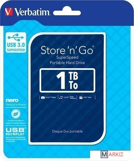 Markit » Внешние накопители (HDD и SSD) » Внешний накопитель Verbatim Store 'n' Go USB 3.0 1TB (синий)