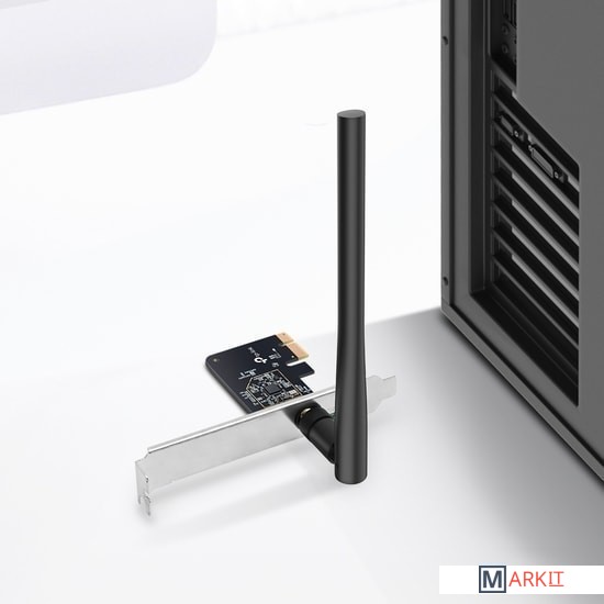 Archer T2E позволяет создать на компьютере двухдиапазонный Wi‑Fi. Также его можно использовать в качестве хот‑спота, чтобы делиться интернетом с другими Wi‑Fi устройствами. Используйте 2,4 ГГц для просмотра веб‑страниц, работы с почтой и соцсетей, а 5 ГГц — для онлайн‑игр и стримов.MU-MIMO позволяет создать несколько одновременных потоков данных, что улучшает пропускную способность и эффективность при использовании MU‑MIMO роутера.WPA3 — это новейший протокол, повышающий безопасность персональных Wi‑Fi сетей. Более надёжное шифрование Wi‑Fi пароля и защита от брутфорс‑атак обеспечат полноценную защиту домашнего Wi‑Fi.Возможность установки антенны в необходимое положение и её замены любой другой совместимой направленной антенной для расширения покрытия.Для совместимости с любым типом компьютерного корпуса в комплекте идёт стандартная и низкопрофильная планки.