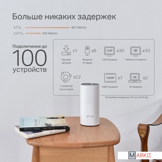 Благодаря современной Mesh-технологии модули Deco образуют единую домашнюю сеть с одним именем. Ваши устройства будут автоматически переключаться между разными модулями Deco на высокой скорости, куда бы вы ни пошли. Комплект Deco P9 с тремя устройствами обеспечивает покрытие до 560 кв.м. Если этого недостаточно – просто добавьте в сеть больше модулей Deco для увеличения покрытия.Устройство позволяет передавать данные между модулями на скорости до 1000 Мбит/с по стандарту Powerline. Стандарт Powerline использует электрическую проводку для формирования более надежной mesh-сети между модулями и создавать поистине бесшовное покрытие.Deco способен поддерживать работу даже самой загруженной сети, обеспечивая одновременное соединение до 100 устройств. Настройка осуществляется благодаря мобильному приложению Deco.