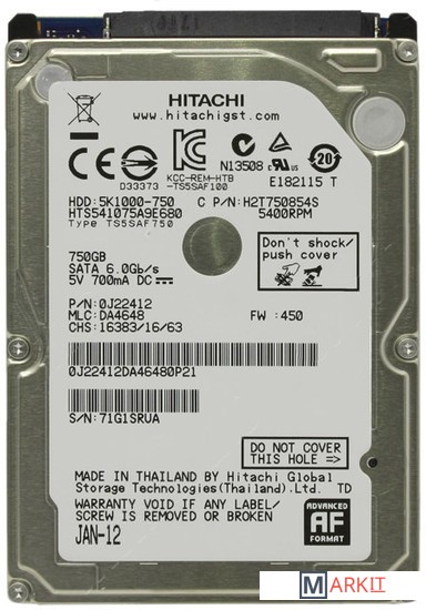 Markit » Жесткие диски » Жесткий диск Hitachi Travelstar 5K1000 750GB (HTS541075A9E680)